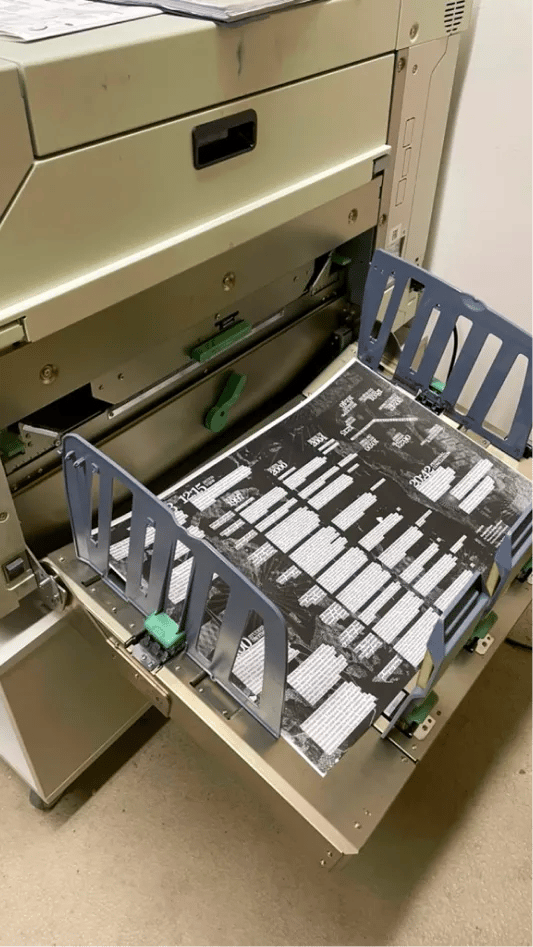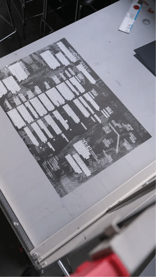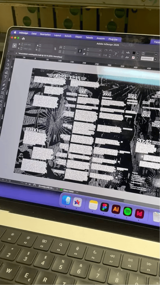 Der Flyer wurde im Risodruck im Format A2 produziert und anschließend gefalzt. Die Produktion stellte dabei einen zentralen Bestandteil des Projekts dar, da bereits im Gestaltungsprozess Aspekte wie Beschnitt, Falzung und das spezifische Druckverfahren präzise mitgedacht werden mussten.